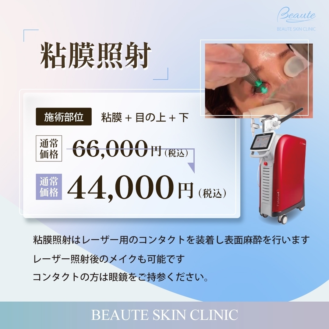 目薬タイプの麻酔を行い目の保護のための金属製のコンタクトレンズを入れます。まぶた裏の粘膜にレーザーを照射していきます。治療中の痛みはほぼありません。治療後は、目が乾燥して目やにが出やすくなるため、乾燥防止(保湿)の目薬を1日5~6回点眼していただきます。