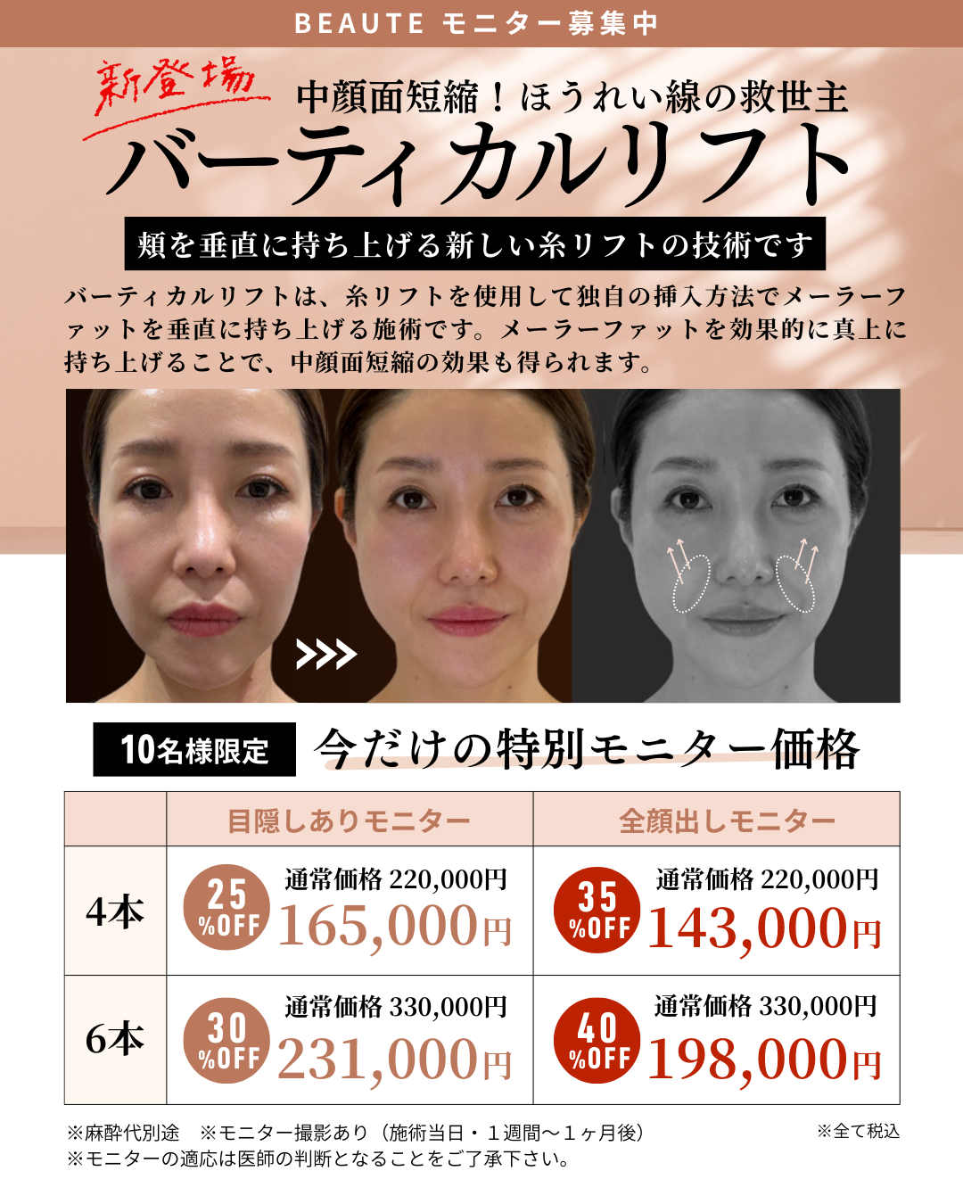 モニター枠数:各施術 先着10名限定
