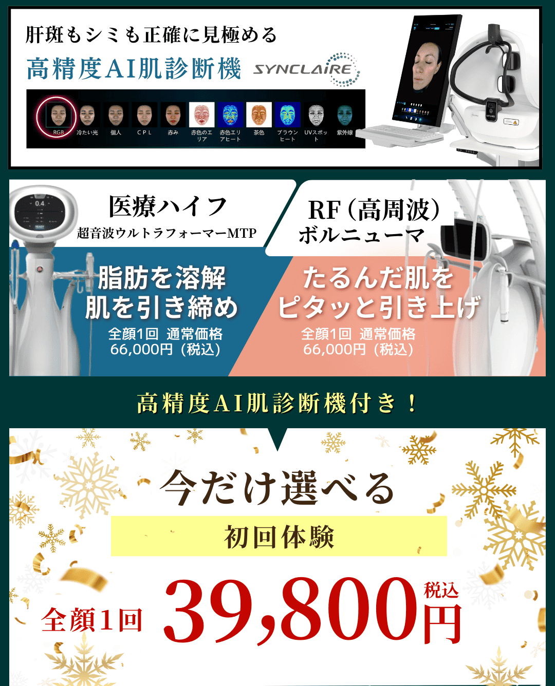 最新AI搭載の3D肌診断機「シンクレア」で撮影!医師の的確な診断で施術内容をご案内します。